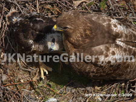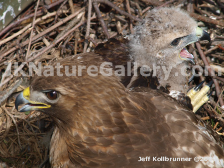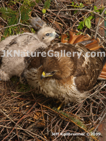 The eyass gets some shade from Mama. Photo taken 5/13/09.