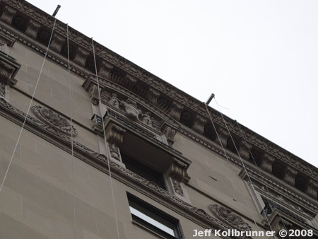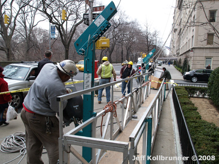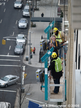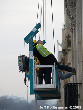 More preparation work on the scaffold and cable system that will hoist