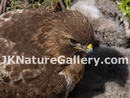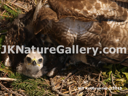 The eyass seeks shad from the hot sun under Mama. Photo taken