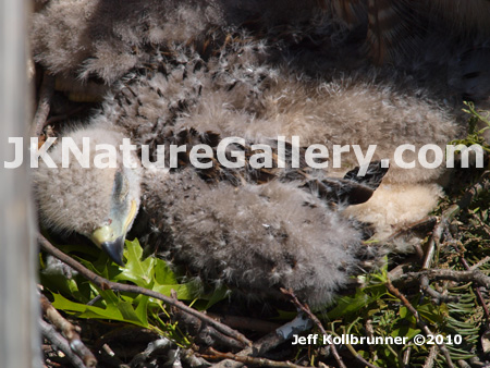 Two of the eyasses are fast asleep. Photo taken 4/29/10.